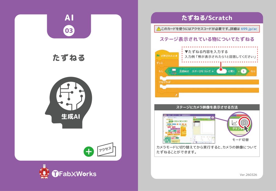 使い方は同梱されているカードの「AI03 たずねる」を参照。