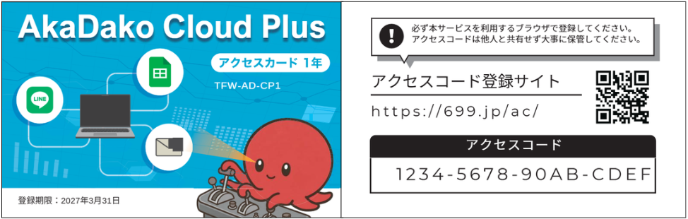 一般向け AkaDako Cloud Plus アクセスカード TFW-AD-CP1